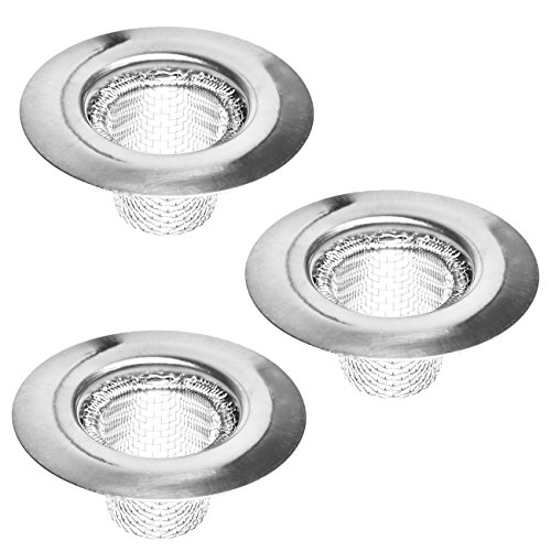 3 Pack - 2.25" Top / 1" Mesh, Stainless Steel Slop, Utility, Kitchen and Bathroom Sink Strainer.