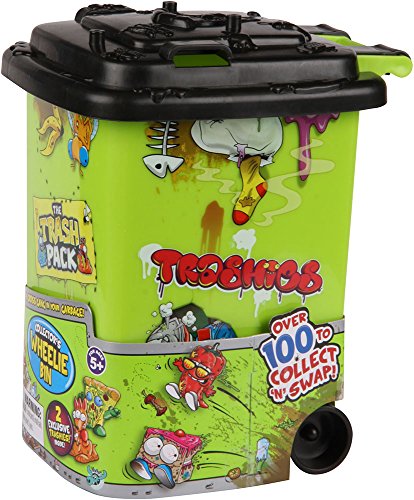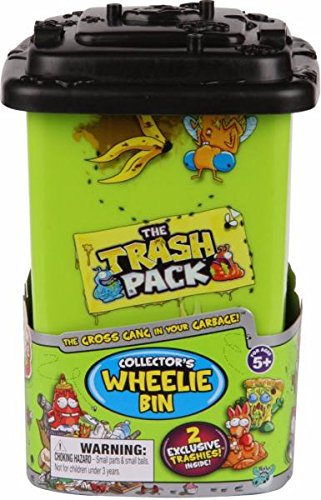 -. Binding : Toy -. Brand : Trash Packs -. EAN : 0630996680155 -. Feature : The Trash Pack Collector's Wheelie Bin with 2 Exclusive Trashies / 2 exclusives Trashies, Pooey Rooey and Atomic Pizza. / Store your Trash Cans & Trashies! / e wheels on the bottom enable the bin to be rolled like a real bin. The hinged lid opens to enable more than 75 Trashies to be stored / Pooey Rooey and Atomic Pizza are exclusive to the Collector's Wheelie Bin. Pooey Rooey is a three-eyed mutant boxing kangaroo, while Atomic Pizza is an irradiated rotten pizza slice. Pooey Rooey is a female kangaroo, as she possesses a pouch containing a three-eyed joey -. IsAdultProduct : 0 -. Label : Moose Toys -. Manufacturer : Moose Toys -. Model : 68015 -. MPN : 68015 -. PartNumber : 68015 -. ProductGroup : Toy -. ProductTypeName : TOYS_AND_GAMES -. Publisher : Moose Toys -. Studio : Moose Toys -. Title : The Trash Pack Collector's Wheelie Bin with 2 Exclusive Trashies -. UPC : 630996680155