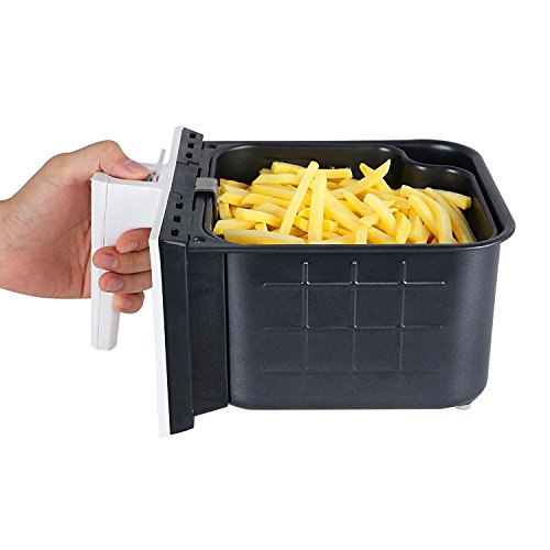 Multi-function, 4-in-1 air fryerThis versatile air fryer fry, bake, grill and roast various foods with little-to-no oil, providing evenly cooking and giving it fried taste without the added fat or calories. No oil smell, no splatter, no mess, enjoy your crispy golden snacks and dishes at the right time and temperature for the best result!