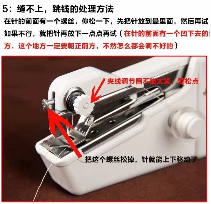 8.换针:松开固定螺丝,取出断针,装上新针即可.