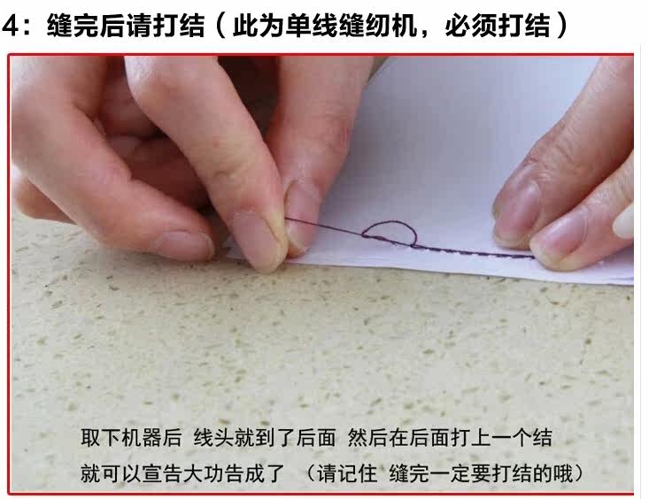 5.缝纫操作:用左手持织物,右手大拇指轻轻地迅速地下压,送布机构自动将被缝物向左送出.持机右手逐渐右移,左手持布配合缝纫节 奏轻轻将被缝物向左方移动,直至缝纫结束