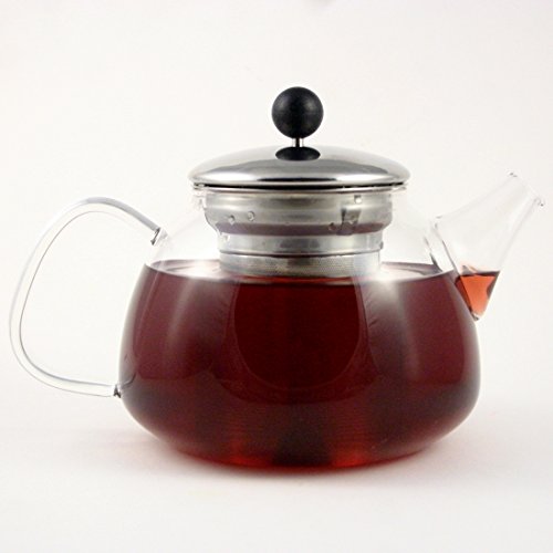 -. Feature : French-press style stainless-steel filter for full control of the steeping process. / Heat-resistant borosilicate glass with much thicker and more durable glass. / The silicone plunger locks tea leaves into the bottom of the filter once brewing is complete / Enjoy the beautiful color of your tea through the super-clear glass during the simple infusion process. / Capacity: 1 liter (34 fl oz)