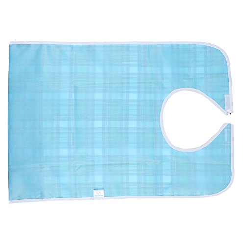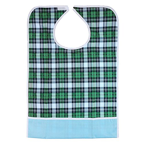 Tinksky Adult Mealtime Protector Waterproof Pocket Bib Disability Aid Apron Washable with Crumb Catcher (Green Grid)