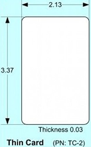 -. Feature : Size of a standard credit card | Easily fits into most wallets / P.R.Intable on standard ID card P.R.Inters | Dimensions per ISO 7810 / Utilizes RFID Technology | Color: White | Material: PVC