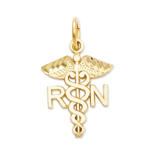 -. Title : Diamond Cut RN Caduceus Charm in 14 Karat Yellow Gold