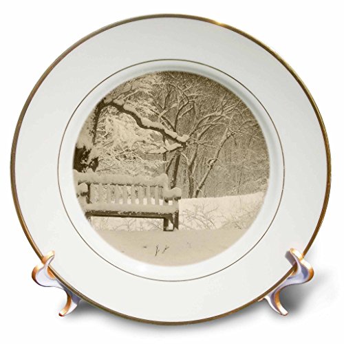 3dRose cp_20504_1 Nichols Arboretum 1 Sepia Tone Print of Winter Scene After Snowfall in Ann Arbor MI Porcelain Plate, 8-Inch