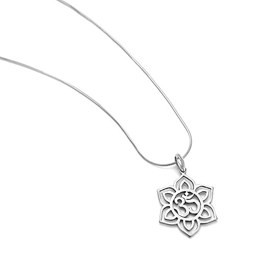 -. Title : 925 Sterling Silver Blooming Lotus Flower Om Aum Ohm Sanskrit Symbol Pendant Necklace 18"