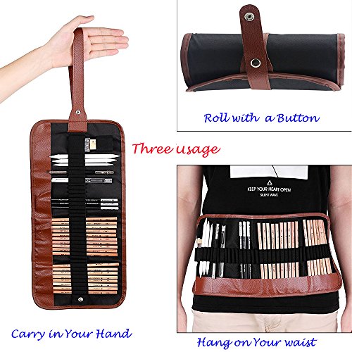 - With a Portable Pencil Pouch - The ROLL pencil case for storage have individual slots for each pencil, well protect your pen nib from damage and make them easy to carry. NOTE for usage of bag: Middle buckle on belt is designed to roll up in a cylinder. You can buckle it into a circle belt with last buckle to use to hang or hook