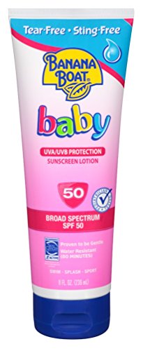 Happy baby, worry-free mom. Baby tear-free sting-free SPF 50 lotion lets your baby smile into the warmth of the sun. No stinging, no tearing.