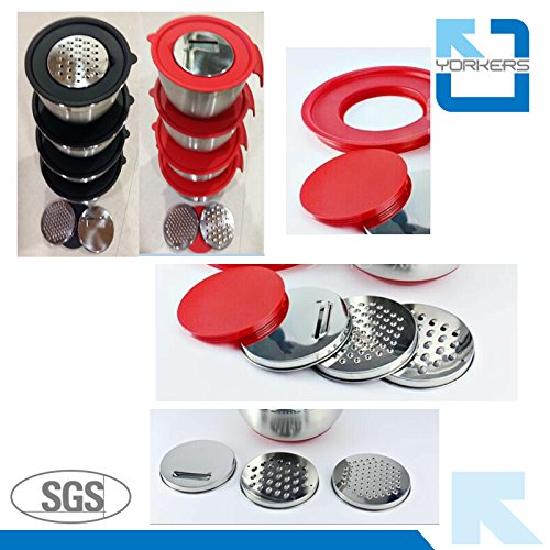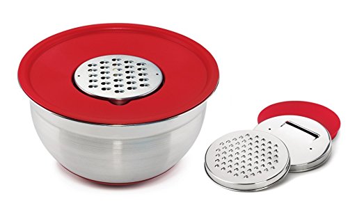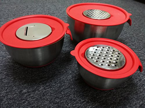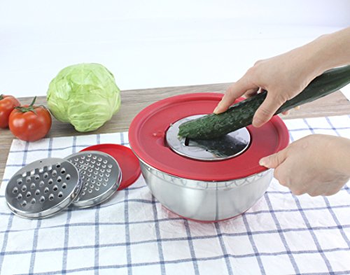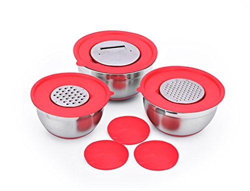 SH&G Stainless Steel Mixing Bowl Set with Non-Skid Bottom - Comes with lids with Grater (Fine and Course), Slicer, and Solid Inserts