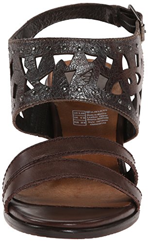 Studio : Ariat Publisher : Ariat Binding : Shoes Product Description Full grain leather upper. Two-piece, buckle-strap sandal silhouette. Striking floral chop-out design. Leather lining, foam padded insole. Rubber outsole, 2 3/4" leather wrapped heel. 0