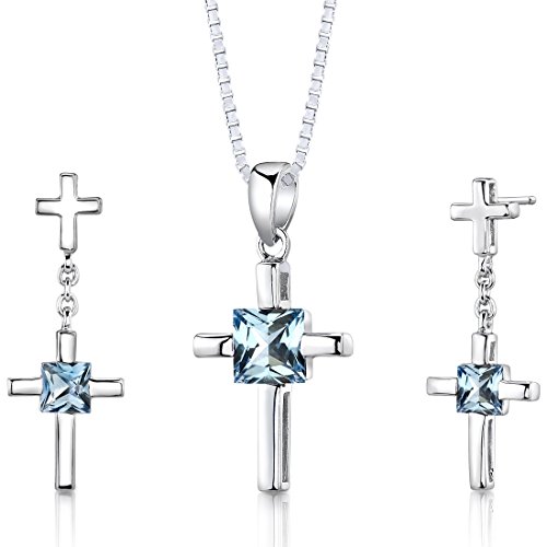 -. Feature : Swiss Blue Topaz, Deep Sky Blue Hue, Brilliant Sparkle / Pendant and Earrings are in .925 Sterling Silver and finished with Rhodium / Top Quality Craftsmanship / Exceptional Styling / 30 Day Return Policy