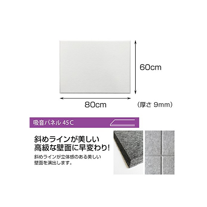 원본상품명:【賃貸でも安心】ピンで取り付け可能な 壁面「吸音」フェルトパネル 45度カット 80×60cm - ホワイト - 1枚 フェルメノン FB-8060C-WH