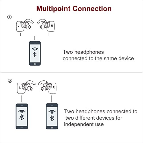 -. Feature : 【High-Fidelity Sound】Featuring latest Bluetooth 4.1 CSR technology and high quality chip that produce incredible sound quality with deep bass and crystal clear treble. Clear High & Low Volume. / 【Smart Multipoint Connectivity】You can use 2 earbuds simultaneously, share the same music/movies with your lover or friend; each bluetooth earbuds also can be paired with two Bluetooth devices like your iPhone or Android phone, iPad, tablet, or laptop separately. / 【Long Battery Life】Built in 50 mAh lithium polymer battery, enjoy about 3 hours of premium quality talk/play time(full charge approximately 1-2 hours), up to 80 hours standby time. Equipped with a dual USB charging cable. / 【Comfortable and Secure Fit】Comfortable and secure in-ear earbuds, soft material protects ears, makes you enjoy your phone call and music time. Wearing firmly by the ear hook during workout, fitness, exercise, running or gym. / 【One-Year Warranty】Our bluetooth earphones have 12 months Replacement Warranty and 100% Satisfaction Guarantee, please don't hesitate to contact us if you have any question about our product and service.