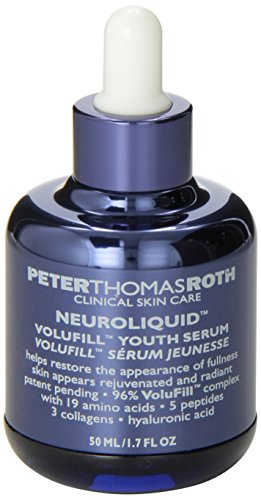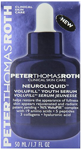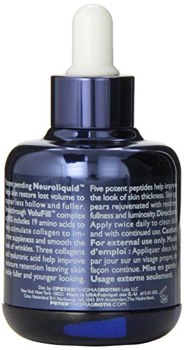 -. Binding : Health and Beauty -. Brand : Peter Thomas Roth -. Color : no color -. Department : Beauty -. EAN : 0670367010358 -. Feature : Visibly restore the fullness of your skin / Uses five potent peptides to improve skin thickness / 19 amino acids to smooth wrinkles -. IsAdultProduct : 0 -. Label : Peter Thomas Roth -. Manufacturer : Peter Thomas Roth -. Model : Setaf_mx_56 -. MPN : 15-01-035 -. NumberOfItems : 1 -. PackageQuantity : 1 -. PartNumber : 15-01-035 -. ProductGroup : Beauty -. ProductTypeName : HEALTH_PERSONAL_CARE -. PublicationDate : 2013-09-21 -. Publisher : Peter Thomas Roth -. ReleaseDate : 2013-09-17 -. Size : 1.7 oz -. Studio : Peter Thomas Roth -. Title : Peter Thomas Roth Neuroliquid Volufill Youth Serum, 1.7 Fluid Ounce -. UPC : 670367010358