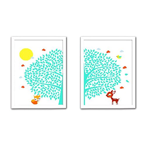 DOMEI Stamped Cross Stitch Kit, Animal Fox and Deer Colorful Happy Tree, Set of 2, 26.8 x 18.9 inches