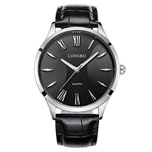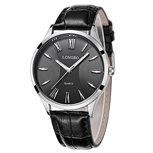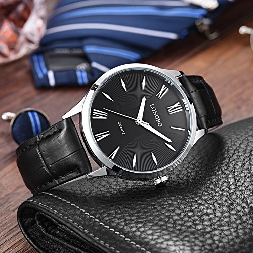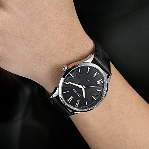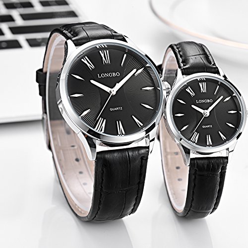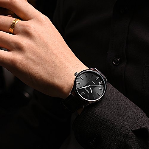 Rockyu 브랜드 손목시계 페어 워치 맨즈 레이디스 인기 시계 비지니스 사파이어 유리 블랙 브라운 가죽 밴드 방수 (남자,흑밴드 흑문자판) [병행수입품]