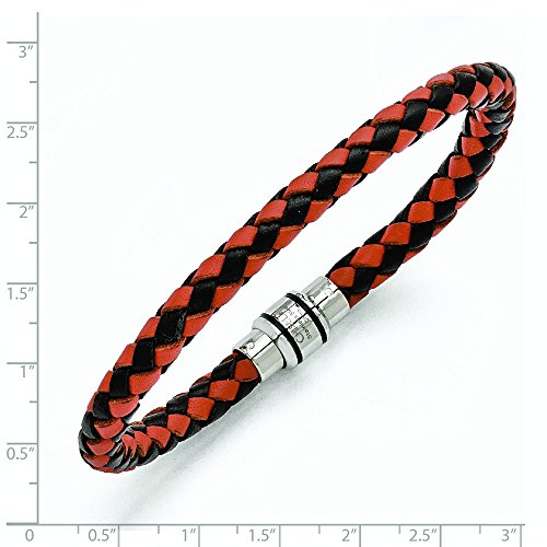 -. Title : Stainless Steel Polished Black Ip Black Orange Woven Leather Bracelet - 9 Inch