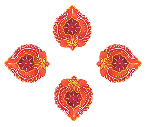 Ramya's Handpainted Earthen Terracotta Decorative Diwali Diyas - Set of 4 (7115)