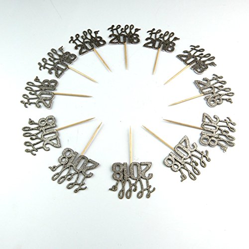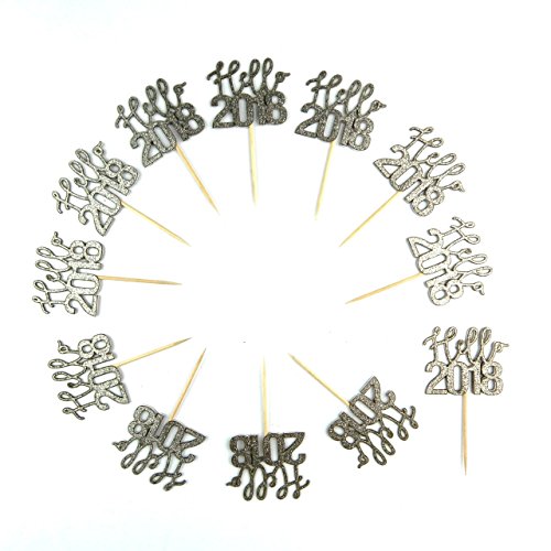 New Yers Cupcake Topper cardstock Color Silver 12 pc Pack Decoration Cake New Years