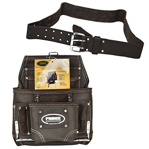 Prince Logo Bundle- 10 Pocket Oil Tanned Leather Nail and Tool Pouch with 2" Double Pin Work Belt- (2 Piece Set)