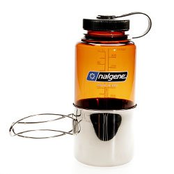 Product Description A clever way to save space and one of the most practical items an outdoorsman can carry. The Spacesaver cup conveniently fits over the end of a round 1 quart Nalgene bottle, as well as most other round 1 quart bottles, eliminating the wasted space of packing a traditional cup.