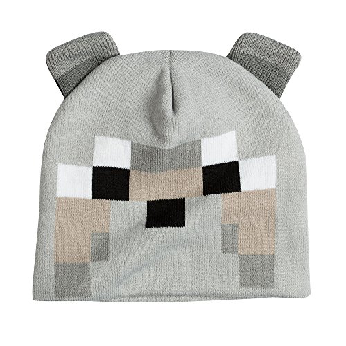 -. Feature : Minecraft Wolf Knit Hat / 100% acrylic / Knitted-in image of Minecraft Wolf face / Sewn-on ears on top / Officially licensed