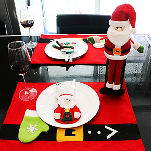 PACKAGE:1 x Elk Style, 1 x Snowman Style, 1 x Santa Style (tableware bag).