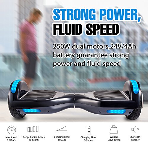 -. Title : VEEKO Hoverboard Two-wheel Self-balancing Scooter with Bluetooth Speaker - UL2272 Certified Hover Board( 9.6Km/hr Max 225lbs Max)with 6.5'' Aluminum Alloy Wheels,250W Dual Motor