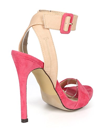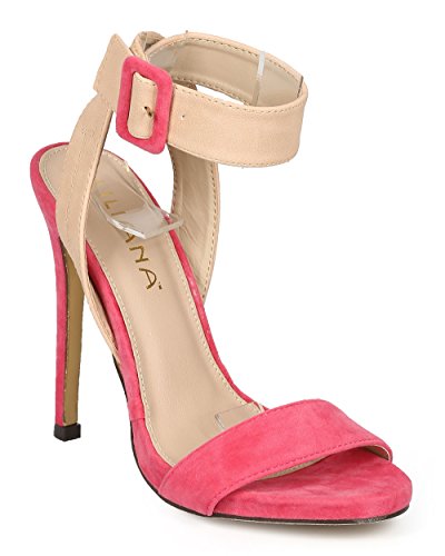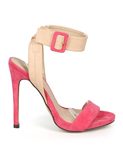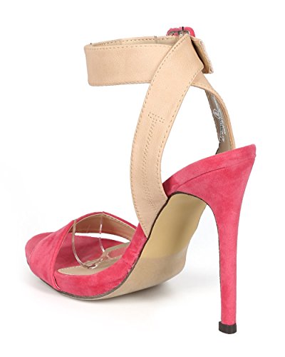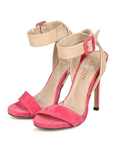 Liliana CH43 Women Suede Open Toe Cross Back Ankle Strap Stiletto Sandal - Coral