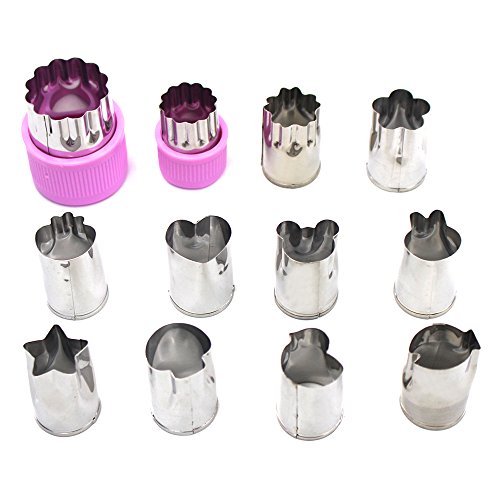 - Package includes:12pcs Vegetable Cutters Shapes set.Suit for making pretty salad,fondant cake, biscuit, cookie, sushi, fruit, vegetable, butterfly noodle.