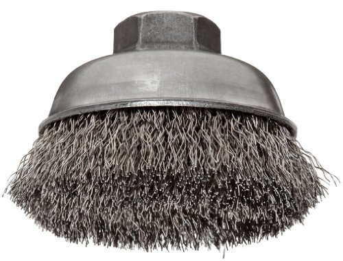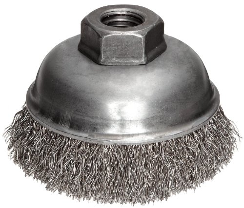 Weiler Wire Cup Brush, Threaded Hole, Stainless Steel 302, Crimped Wire, 3-1/2" Diameter, 0.014" Wire Diameter, 5/8"-11 Arbor, 7/8" Bristle Length, 12000 rpm (Pack of 1)