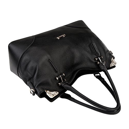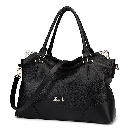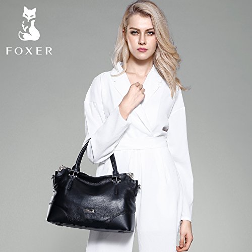 -. Title : FOXER Women Genuine Leather Shoulder Bag Tote Handbag Ladies Large Capacity Satchel, Black