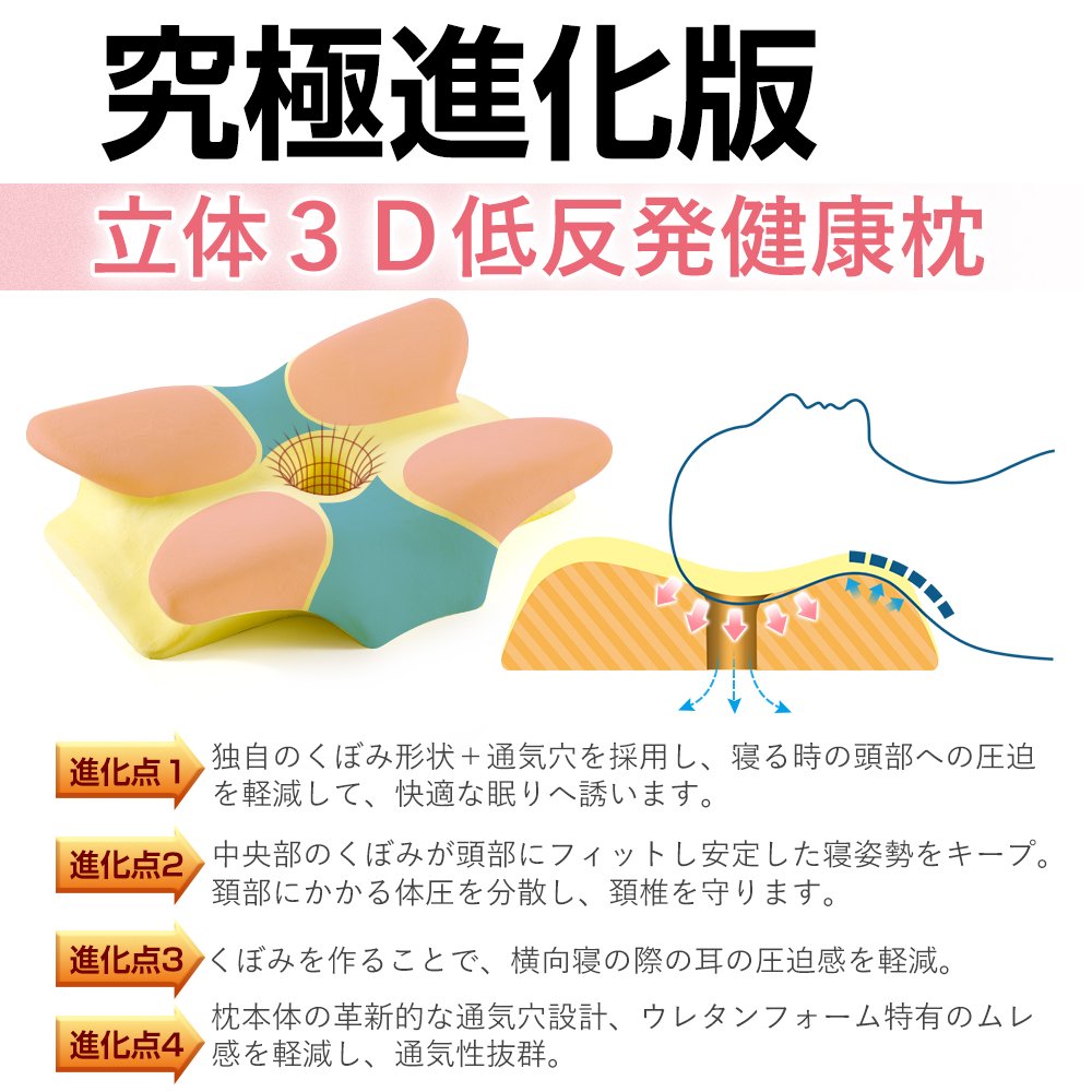 Hollow design + hollow shape realizes "ideal sleep" which relieves head pressure and releases from gravity.