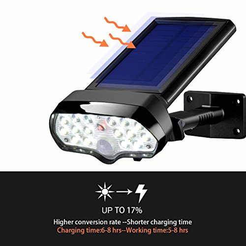 【High Efficient Energy Saving and Long Working Time】- The Solar Motion Sensor Lightswith updated solar panel converts the sunlight into electricity in day, and supply power to work at night. Long Working Time, the solar light illuminates for 6-8 hours in steady mode if fully charged.