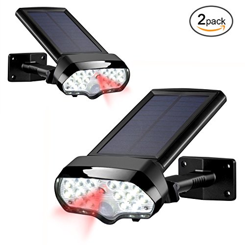 【Super Bright with 17 Led Solar Lights】 - 16 LED with white color to offer super bright lighting for a wide area and strong illumination.1 LED with red color to make your property more safe.