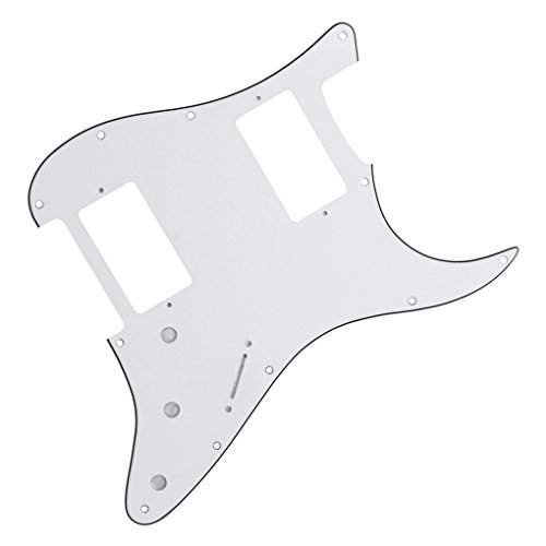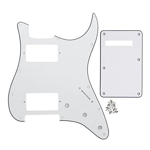 Product Description Specification:Humbucker-Humbucker pickguard, 11 hole standard mounting pattern with counter-sunk mounting screw holes.3 control pot holes pre-drilled in Standard Volume-Tone-Tone Positions (Positions 1, 2, 3).1 standard size switch cut with 2 switch mounting holes (1 each side of switch cut; not counter-sunk).Humbucker hole size: 38mm x 70mmHumbucker screws center/center: 78mmTremolo Spring Cover/Back Plate with standard 6 screw mounting hole pattern.Material: Made of 3ply PVC, with off set screw holes and beveled edge.With pure aluminum foil shielded.Color: White ColorWith protective film on the surface, while using please split it off.Note:Item's color might be different from the picture because of the aberration.Package Includes:1 x guitar pickguard1 x back plate25 x mounting screws 0