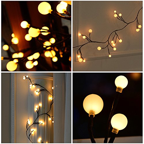 INNOVATIVE LIGHTING - There are 72 energy-saving light bulbs, divided into 24 groups with three light bulbs in each group(0.95in/0.75in/0.55in). The vineyard-like effect resembles grapes on a vine. The flexible wire gives you a lot of freedom to place in different patterns. Use your creativity!