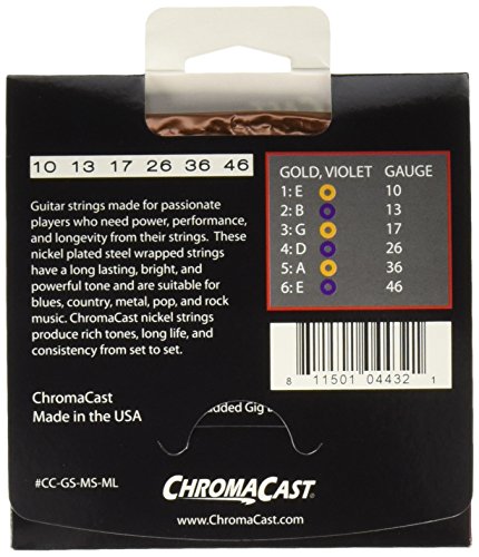 ChromaCast CC-GS-MS-ML-4PACK Maximum Sustain Medium-Light Electric Guitar Strings, .010-.046, 4-Pack