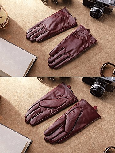 * Material: 100% ITALIAN NAPPA TOP GENUINE LEATHER * Lining: 100% PURE CASHMERE LINING * Color: BLACK/BROWN/RED/PURPLE Size Chart: Measurement for men gloves: Size S= 6.5" - Middle finger = 2.95" Size M= 6.8" - Middle finger = 2.95" Size L = 7.4" - Middle finger = 3.11" Size XL= 7.7" - Middle finger = 3.19" Size 2XL= 8.0" - Middle finger = 3.27" Because the leather gloves for men are sent when it just finished, so when you receive it, maybe it will smell bad. This is normal. But you just need to place gloves at ventilated place several days. The smell will gone. Don't do this: 1. Rub on sharp or rough objects 2. Place under the sun directly 3. Dry it with a hair dryer 0