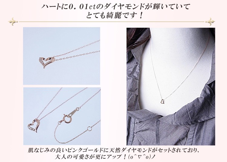 商品説明 ピンクゴールドに天然ダイヤモンドがセットされたハートのネックレスです。