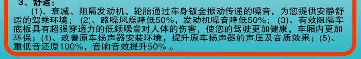 汽车引擎盖隔音隔热棉主要是针对发动机工作时产生的噪音和外界的热量来设计的,在汽车前盖安装一层隔音隔热棉,即阻隔了外界的热量同时也阻隔了发动机声音的传递,复合各种铝箔,加强了隔热的效果,减少热的吸收。汽车引擎盖隔音隔热棉施工简单方便,一般规格是5MM*1M*1.4M,产品还具有安全环保,无味无毒,防火阻燃,防水防腐,耐候性强,柔韧性好,随意弯曲,带有自粘,撕下牛皮纸即可粘贴。