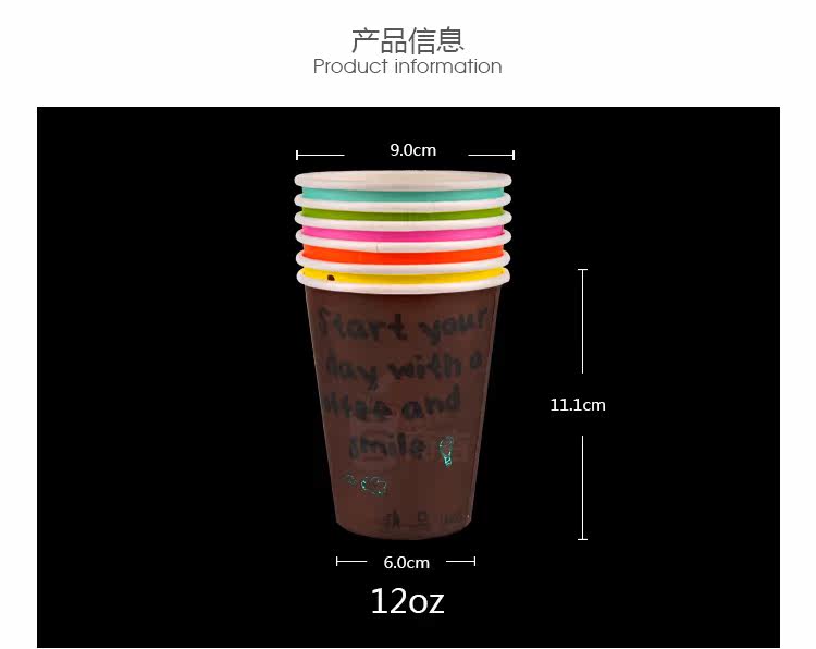 12oz:上口径:9cm x 底口径:6 cmx全高:11.1cm