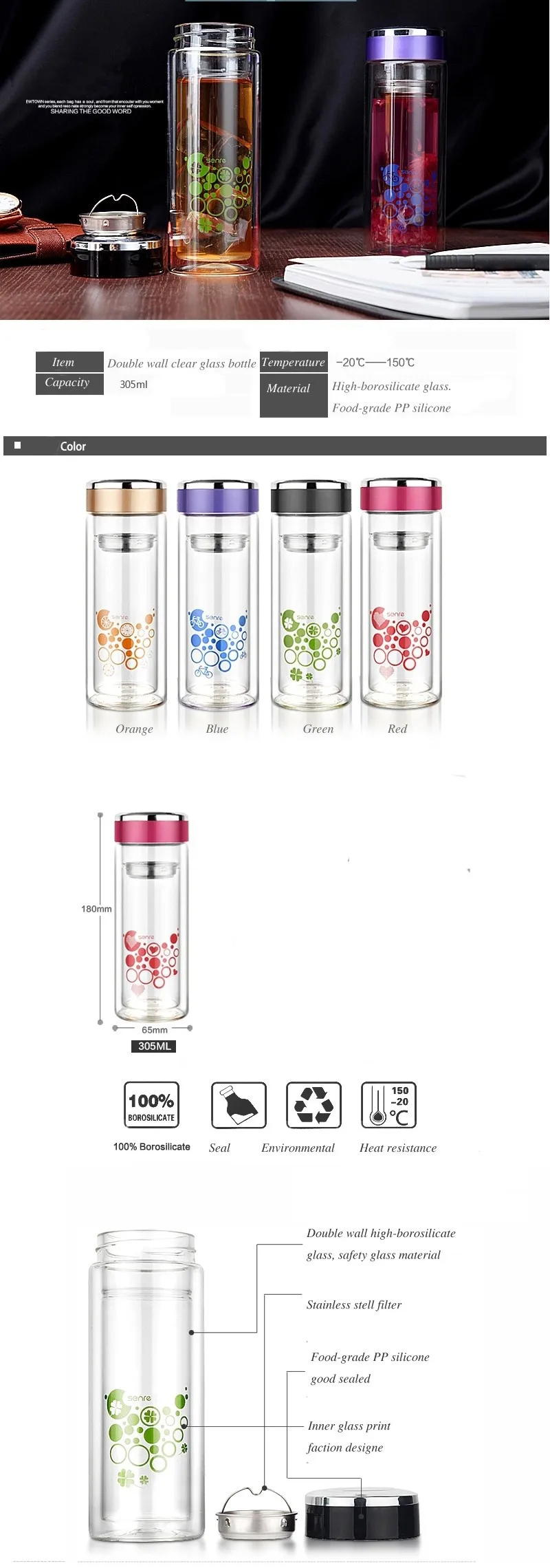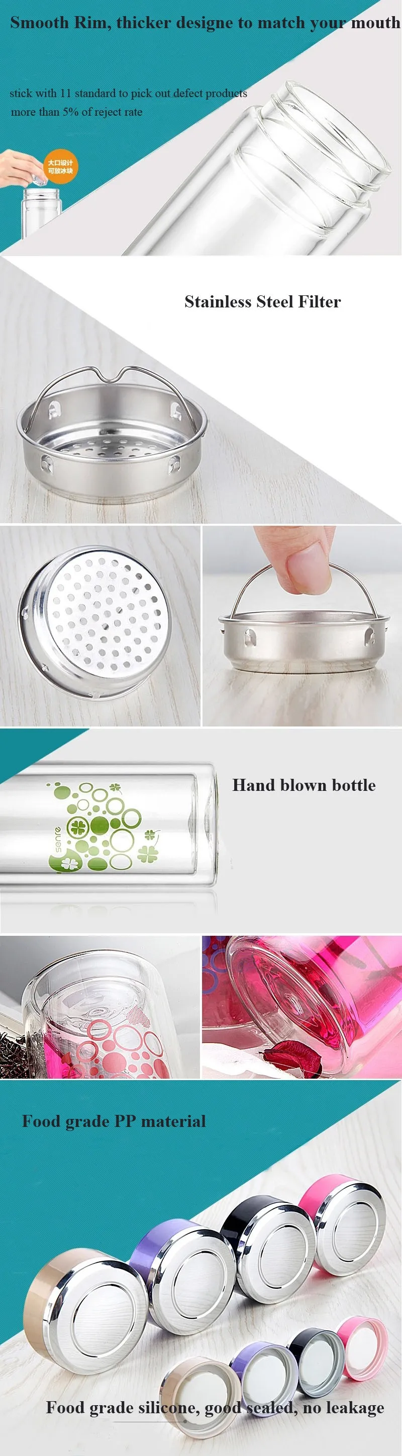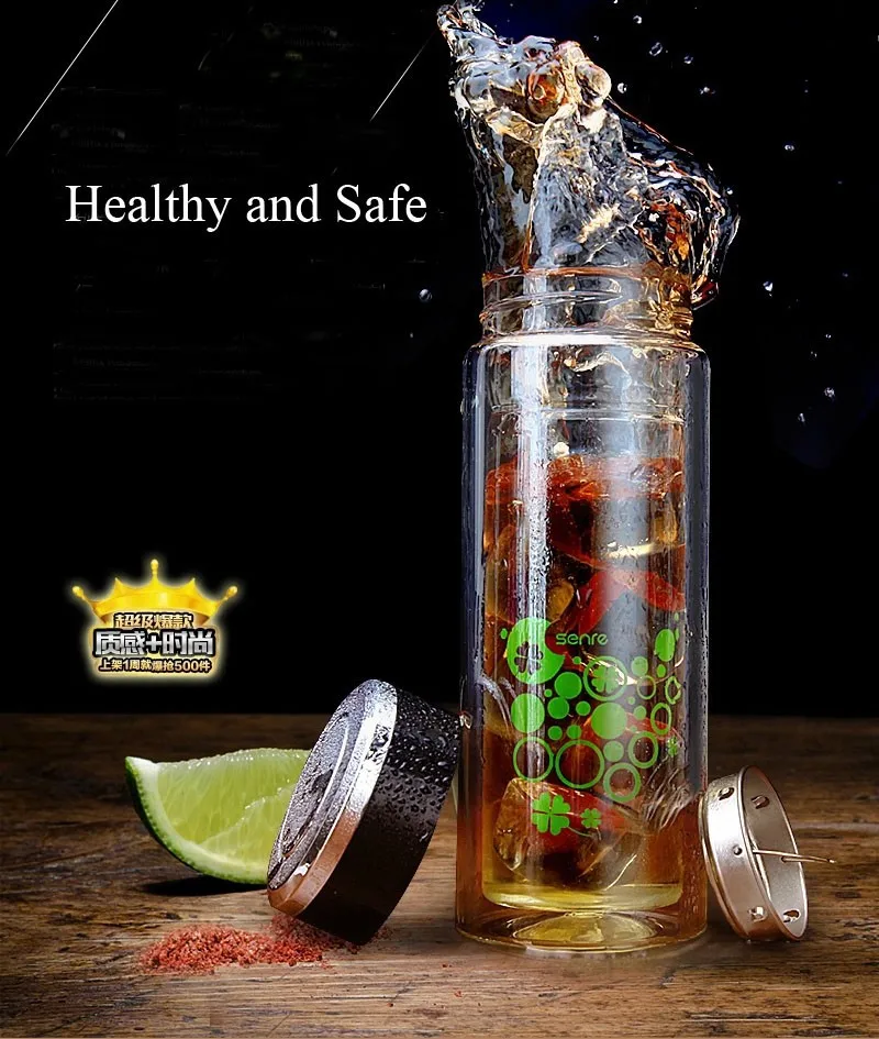 Description:infuser water bottle, my bottle, thermos double wall glass bootle