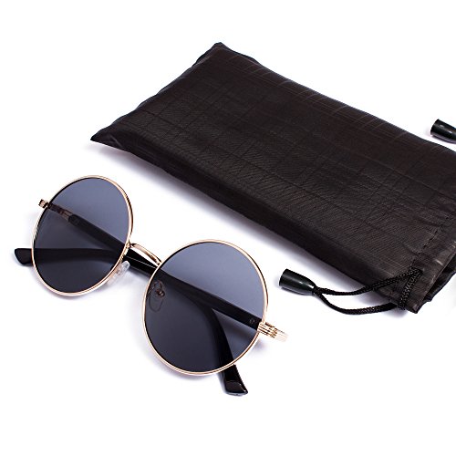 ROUND METAL FRAME BLACK LENS SUNGLASSES MEN'S ?WOMEN'S ?UNISEX