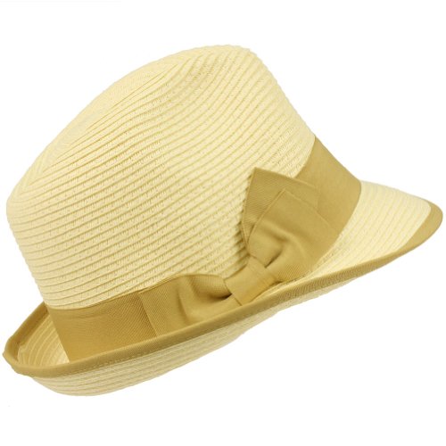 -. Title : 2 Tone Ribbon Bow Beach Summer Fedora Trilby Crusher Sun Cap Hat Ivory Khaki