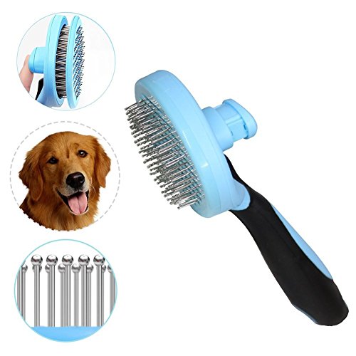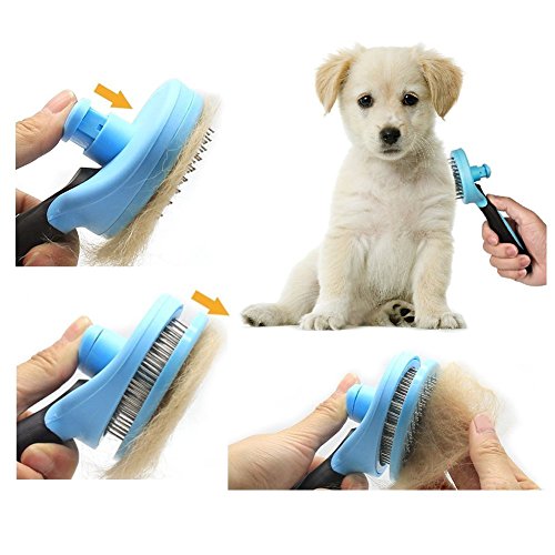 TianJi Self Cleaning Dog Brush Cat Slicker Comb With Gently Round Cleaning Pin to Removes Mats Tangles with Loose Hair, Effectively Reduces Shedding Grooming Long and Short Hair Pets Grooming Brush