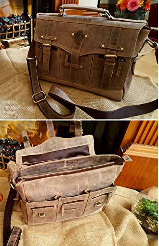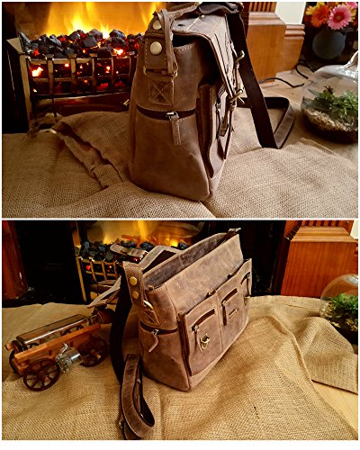 -. Feature : Please check video for this bag ; https://youtu.be/4g6hLus3yUY ; 2 YEAR GUARANTEE : We are so confident in our EXQUISIT CRAFTMANSHIP we would like to offer you a TWO Year Guarantee for our products. / PREMIUM MATERIALS : We select only exceptional quality Buffalo leather, solid brass fittings and YKK Zippers to create our Exclusive, long-lasting items - true luxury goods. / MAXIMUM STORAGE SPACE ;15" x 11" x 5" Interior features One very roomy, beautiful satin lined compartment, padded laptop compartment, wallet pocket, cell phone pocket and two pen slots. / STYLISH & COMFORTABLE : Perfect Christmas Gift For Men and Women ; keep your essentials safe on the move with multiply secure zippered outside pockets. Removable and adjustable shoulder strap provides comfortable, hassle-free carrying. / SAVE 50% PLUS ON YOUR PURCHASE:: Now you can finally get a GENUINE LEATHER Laptop bag without breaking the bank and paying 300$ or more - the best leather briefcase at the most economical P.R.Ice!