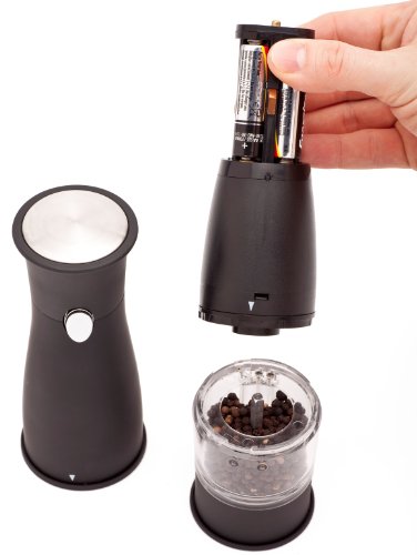 Studio : Ozeri Publisher : Ozeri Binding : Kitchen Product Description The Ozeri Artesio Electric Grinder by Ozeri is the ultimate accompaniment to any dinning setting where a touch of fresh pepper (or salt) goes a long way. Designed to operate effortlessly, the Artesio combines an adjustable ceramic grinding mechanism with a battery-powered engine for push-button easy dispensing of pepper (or salt). Marketed almost exclusively by word of mouth, the battery powered Artesio consistently wins applause with its ability to grind peppercorns, salt and spices. The Artesio Electric Grinder by Ozeri also boasts an ultra-soft non-slip grip, and a built-in light for low-lit dining ambiances. The Artesio requires no assembly, and runs on 4 AA batteries (not included). 0