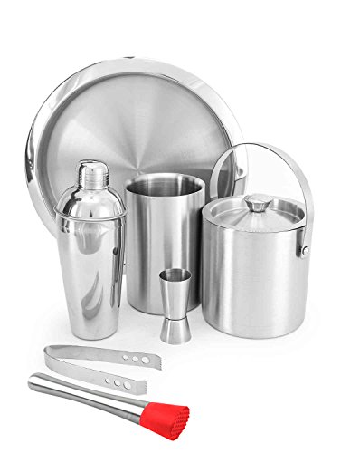 -. Feature : Bar Set Of 7 Pieces Including Muddler,Ice Bucket,Tong,Cocktail Shaker,Jigger,Bar Tray,Wine Cooler / Muddler : 1.2 x 1.2 x 8 inches,Ice Bucket Dimensions- 15.8 X 15.8 X16.5 cm,Cocktail Shaker Dimensions- 6.4 X 6.4 X 25.4 cm,Peg Measurer Dimensions- 4.4 X 4.4 X 9 cm,Bar Tray Dimension- 30.5 X 30.5 X 1.5 cm,Wine Cooler Dimensions- 11.5 cm X 11.5 cm X 20 cm, Tong 2 X 12 X 3 cm / IDEAL FOR ANY LEVEL - If you're looking to mix up delicious and refreshing cocktails that you'll want to serve again and again at your next cocktail party, then this is the set you'll need. It's durable, rugged, washable and great to train the beginner bartender, as well as to be enjoyed by the pro's. Recommended for anyone who wants to start a home bar, or add class and variety to an existing one. / A TASTE FOR ALL - Experiment with the classic cocktails such as the minty, zesty mojito, an easy vodka tonic, or an exotic honey and bergamot-flavoured Golden Flip. Stick with a delicious vodka cocktail, or branch out with some non-alcoholic Mocktails. Select something that fits your mood, or pick something new and adventurous. Either way you can't go wrong! / GET INTO THE MIX - Impress friends and colleagues with this upscale, fabulously priced King International Bar Set, perfect for a cocktail party, cocktails gift, home bars, professional bartenders, a birthday present or and exciting new hobby.